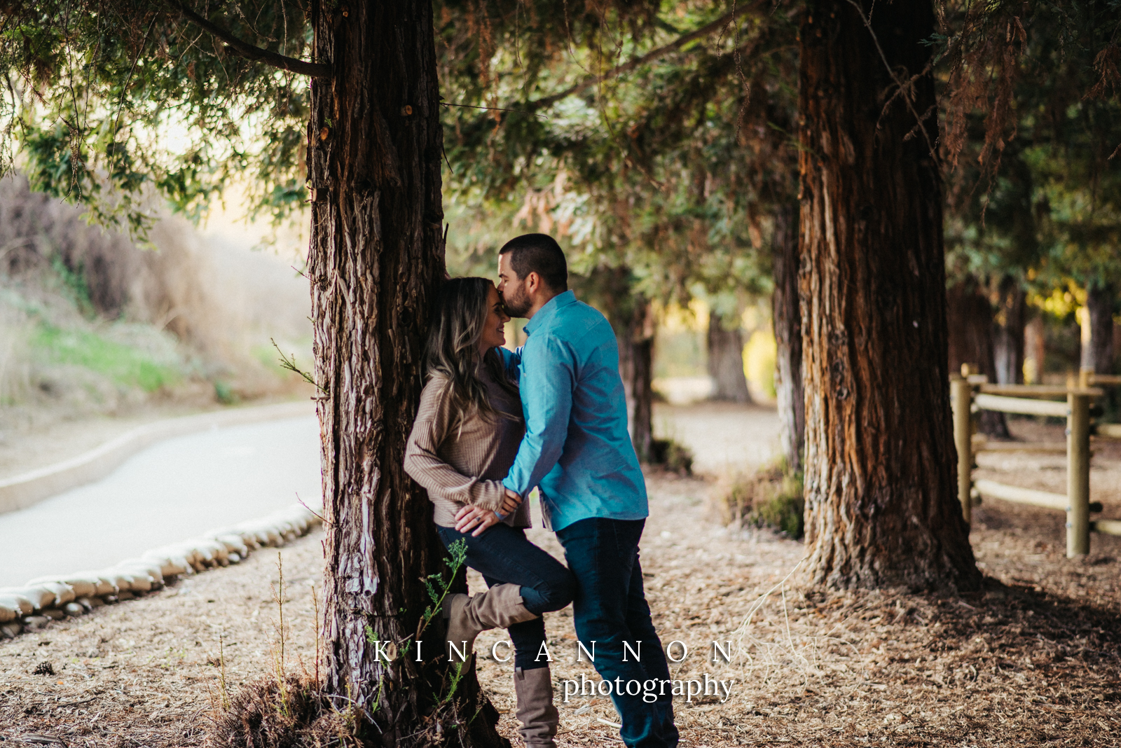 Up in the quiet hills of Yorba Linda lies a beautiful Redwood oasis. As you walk down the winding dirt path, outlined by white fences, you are almost transported out of the Southern California environment and into a secluded canyon, full of gorgeous trees and beautiful light. This is what set the stage for today’s incredible anniversary photos Yorba Linda session with Ashley and Jordan.