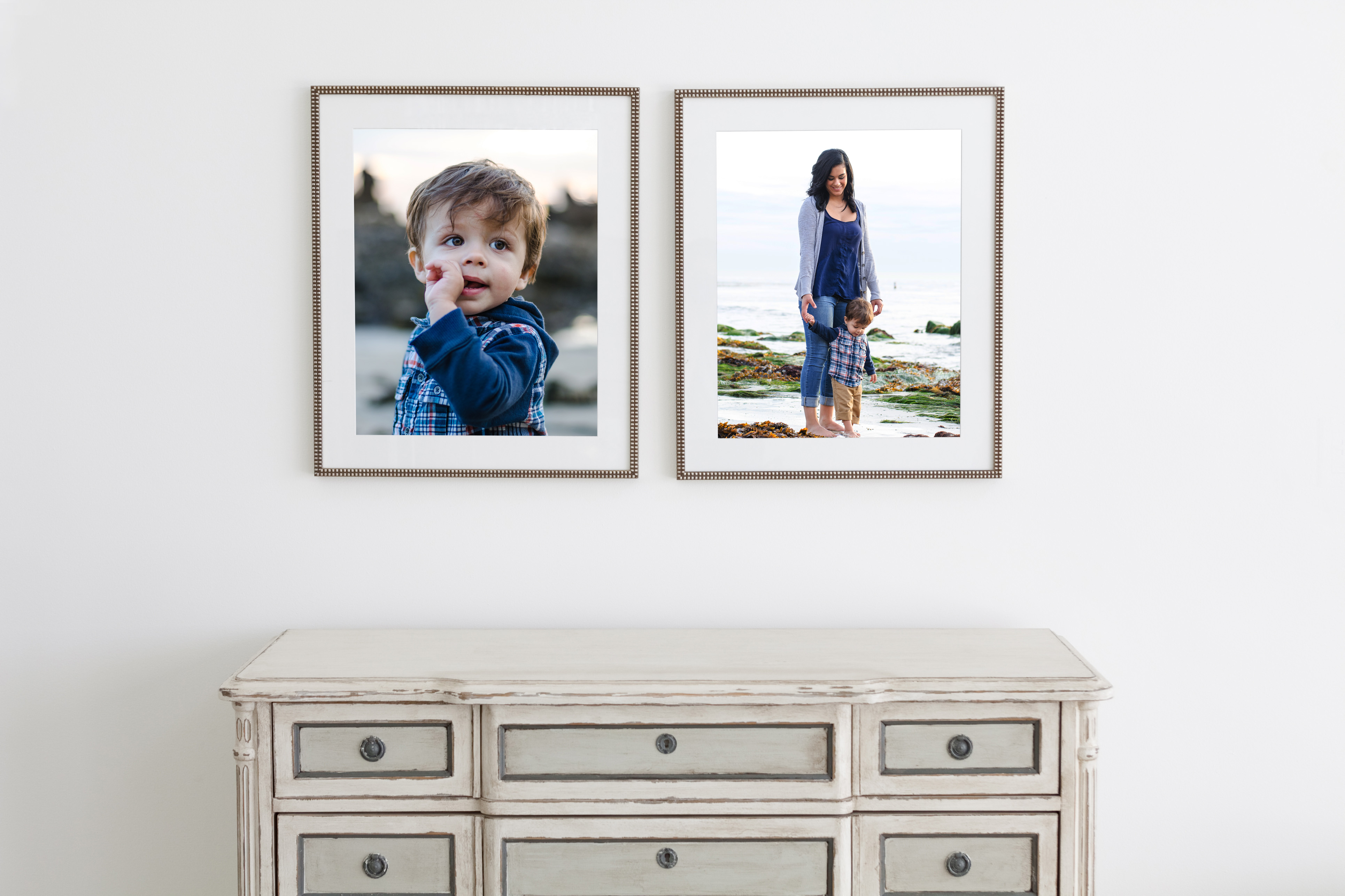 However, are you looking for a more professional way to hang your portraits? Let us know! That’s what we do. We photograph your family and hang up beautiful framed portrait for you, in your home like the sample seen below.